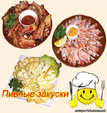 Традиционные закуски к пиву - это различные морепродукты (особенно, креветки), жареные куриные крылышки, небольшие соленые закуски на шпажках, снэки, чипсы, сосиски, колбаски.